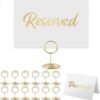 Sturdy Gold Wire Holders: Comes with 12 gold wire card holders with stable bases, securely displaying reserved signs or table numbers without tipping over.